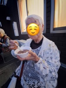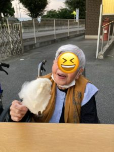 夕方より外に集合!!それぞれ席につき、まずは職員お手製の綿あめ&冷たいフルーツポンチをいただきました。